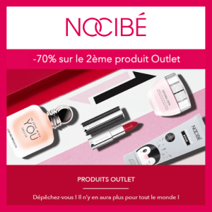 Jusqu'au 10/10/2022, profitez des offres Outlet de Nocibé. L'enseigne vous offre 70 % de remise sur le 2ème article en fin de série que vous achetez. Appuyez sans plus...
