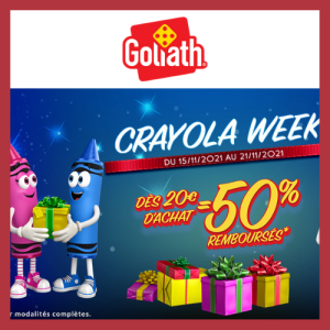 La marque Goliath vous rembourse 50 % sur vos produits Crayola dès 20 € d’achat, jusqu’au 21/11/2021. Découvrez les modalités de ce bon plan en cliquant sur notre lien...
