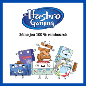 Pour deux jeux Hasbro achetés simultanément, le moins cher vous est entièrement remboursé. Afin de profiter de cette offre, achetez vos deux jeux Hasbro avant le 15 juillet 2021...